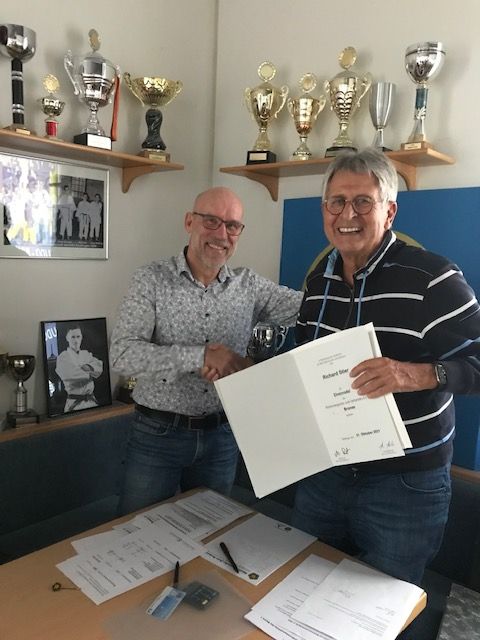 Im Rahmen der Bezirksversammlung des Bezirks 1 am 26. April 2022 in Esslingen wurde der Bezirkskoordinator Richard Stier für seine 10-jährige Tätigkeit vom Präsidenten des Württembergischen Judo-Verbands Martin Bobert mit der WJV-Ehrennadel in Bronze ausgezeichnet.