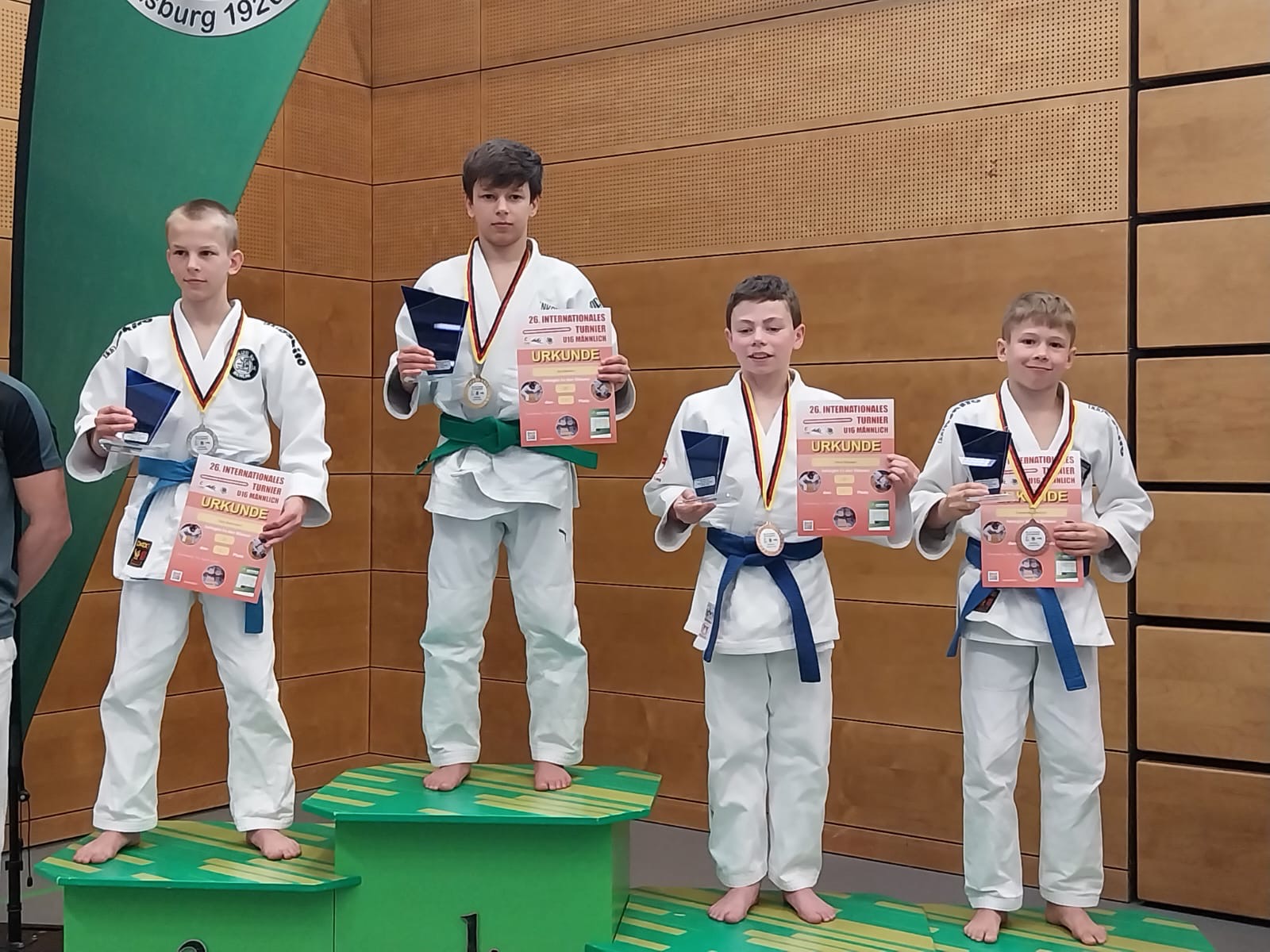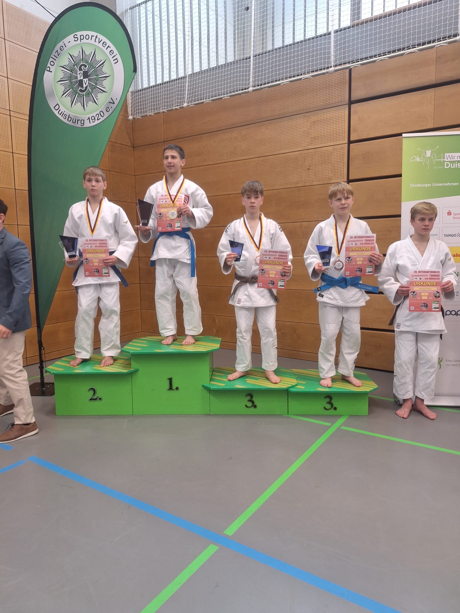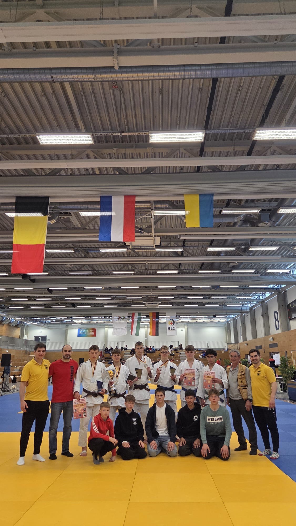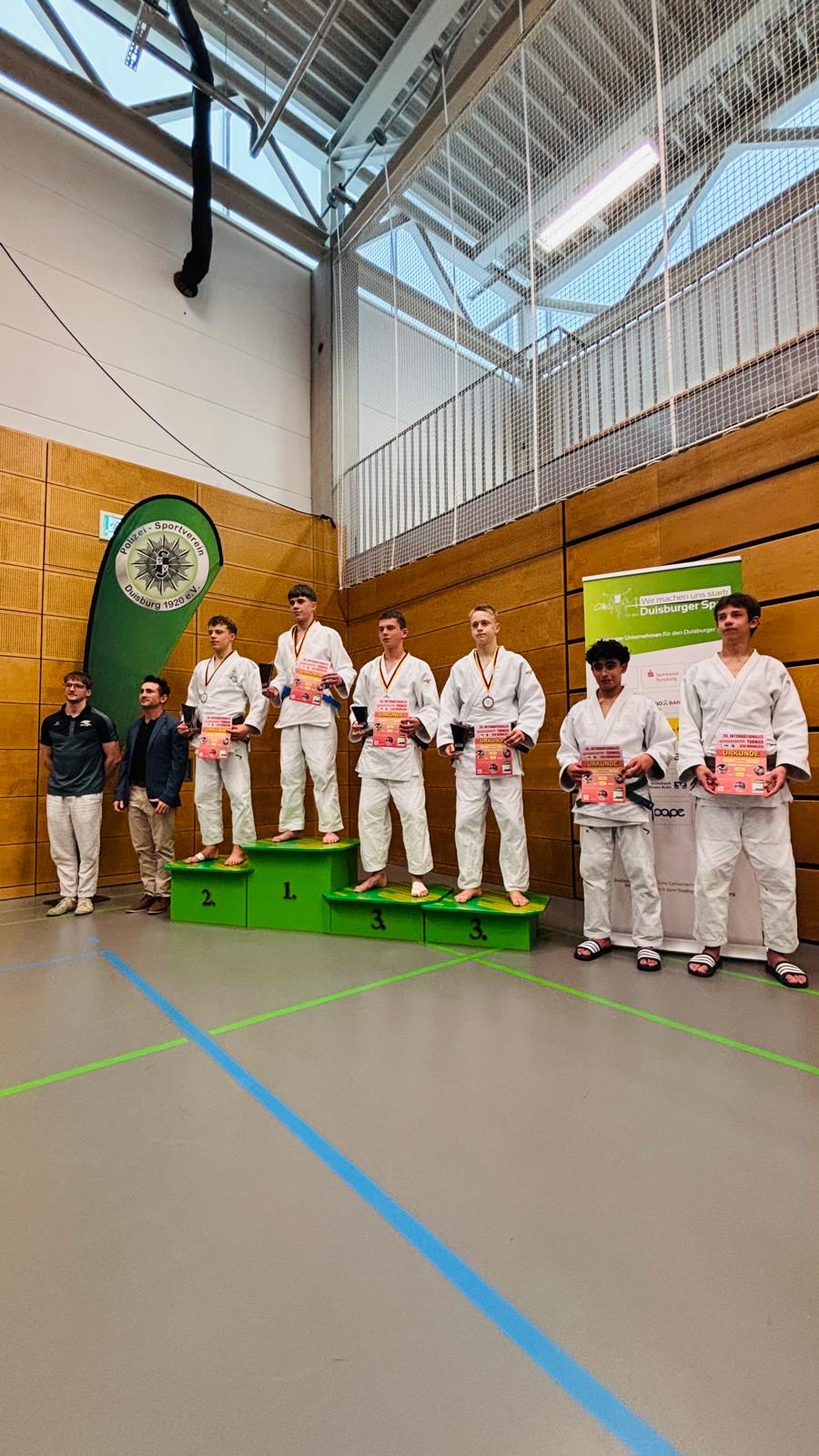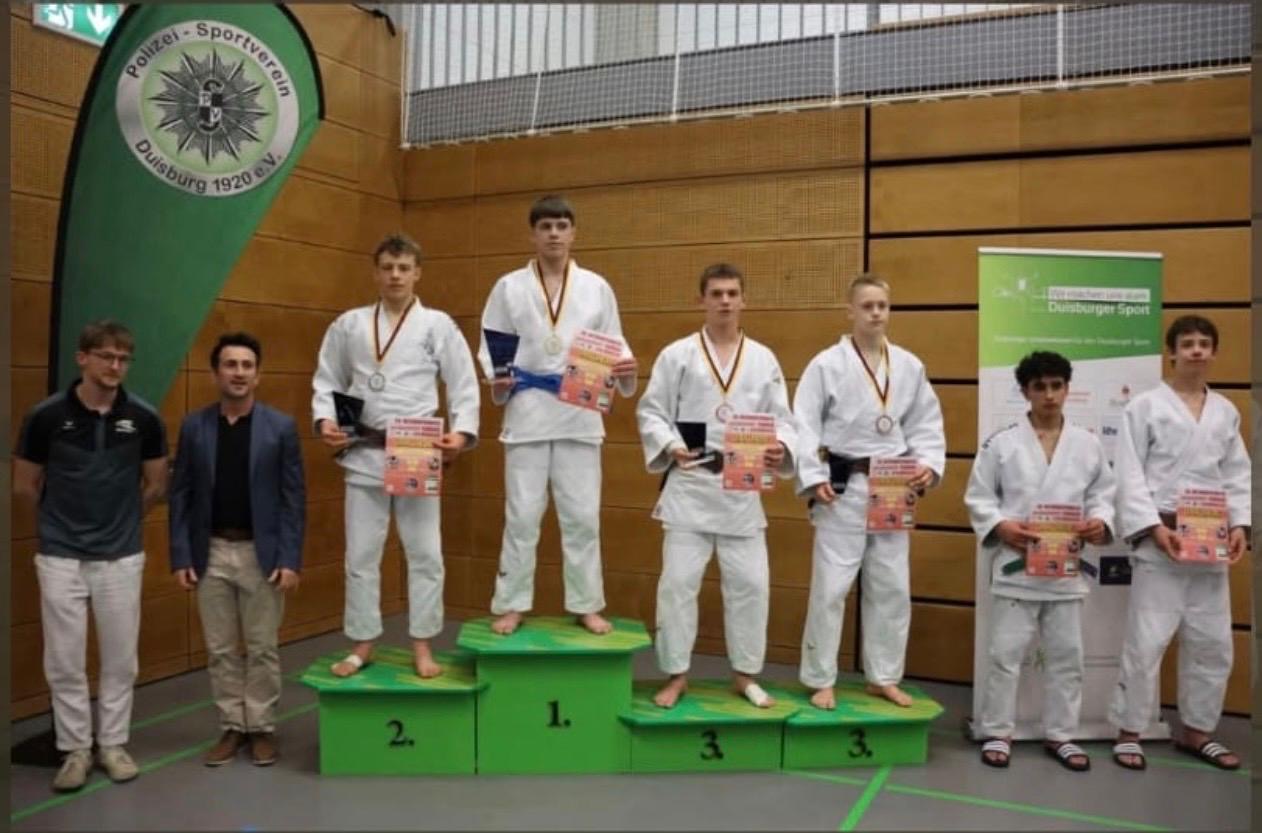 Beim Bundessichtungsturnier der männlichen u16 in Duisburg präsentierten sich die Judoka in herausragender Form und lieferten das stärkste Ergebnis seit Jahren ab. Mit zweimal Gold (Alexandrino, Gleb), einmal Silber (Per) und dreimal Bronze (Alexander D., Alexander S., Ilian), sowie dem Gewinn des Techniker-Pokals (Gleb) setzten die Jungs ein deutliches Ausrufezeichen. Ergänzt wurde das starke Gesamtergebnis durch drei fünfte Plätze, die jeweils nur knapp an einer weiteren Medaille vorbeigingen. Auch im internationalen Vergleich konnten die Athleten voll überzeugen und hielten sowohl gegen Gäste aus Belgien und den Niederlanden als auch im bundesweiten Vergleich hervorragend mit.