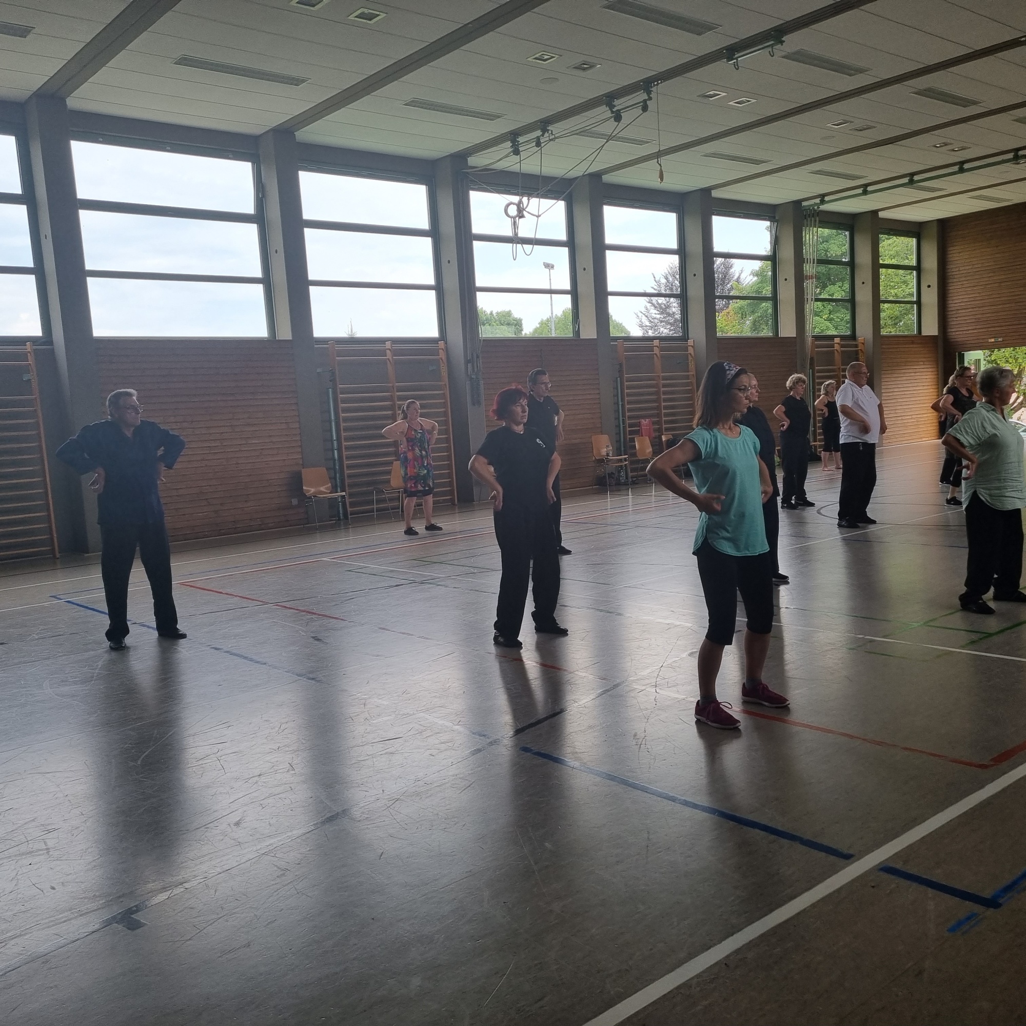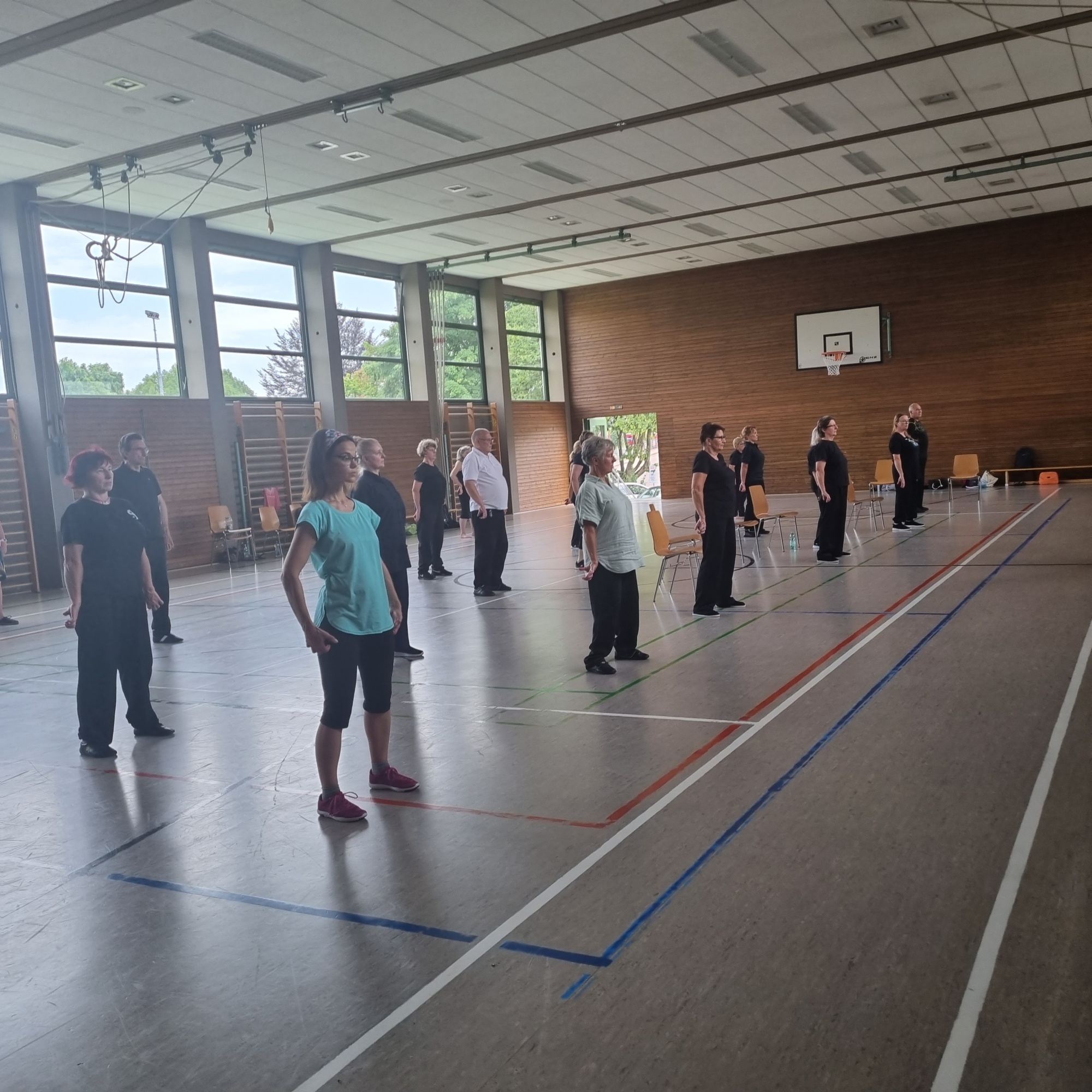 Günther Öttwös, dem Leiter der Sektion Taijiquan traditionell des Württembergischen Judo-Verband e.V., war es gelungen, Meister Foen Tjoeng Lie für einen Lehrgang zu gewinnen, der beim JST Riesbürg veranstaltet werden konnte. An dem Wochenende 14. bis 15. August 2021 führte Herr Lie mit den Teilnehmern und Teilnehmerinnen die Übungen „TongJing XingQiFa – Qigong zur Öffnung der Meridiane“ durch. Übungen, mit denen der Körper gestreckt und gedehnt wurde. Dabei legte Herr Lie Wert auf eine langsame und exakte Ausführung der einzelnen Übungen, um die beste Wirkung für den Körper zu erreichen.