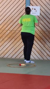 Als besonderes „Schmankerl“ war Netice Kolb, Trainerin beim Gemeinschaftserlebnis Sport (GES), als Dozentin vor Ort. Netice übernahm den Part der Sensibilisierung für die Einschätzung und Wahrnehmung. Wirklich eindrucksvoll, wie mit einfachen Spielen nicht zuletzt die Konzentrationsfähigkeit, die Kommunikation untereinander oder der Wettkampfgedanke geschult werden können. Netice brachte die gesamte Teilnehmergruppe im Alter von 14 bis weit über 70 Jahre spielerisch in Bewegung. Durch viele kleine Übungen wurden selbst die älteren Teilnehmer wieder zu „Kindern“.