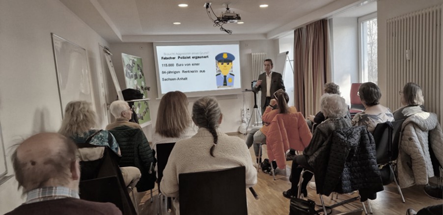 Am 19. Januar 2026 fand in Stuttgart-Feuerbach ein inspirierender und sehr gut besuchter Kurs statt, organisiert von der Feuerbacher Stiftung – Zeit für Menschen. Unter dem Motto „Wahrnehmen, einschätzen und kluges Handeln“ widmeten sich die Teilnehmenden – engagierte Seniorinnen und Senioren aus dem Quartier – einem wichtigen und hochaktuellen Thema: dem Schutz vor Trickbetrug und der Stärkung der eigenen Sicherheit im Alltag.