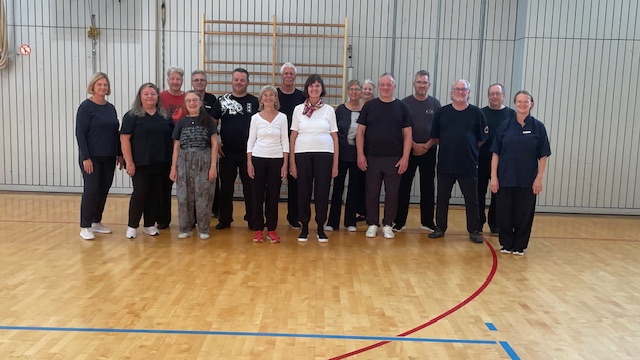 In zwei Gruppen wurde die 13er Form im traditionellen Yang-Stil unter der Leitung von Josef Herzog (Taijiquan Lehrer, JJV FN) und Petra Weber (Taijiquan Lehrerin, VfL Brochenzell) trainiert. Das ist eine Kurzform, die die 8 Handtechniken/Brokate und 5 Schrittarten/Wandlungsphasen beinhaltet.
