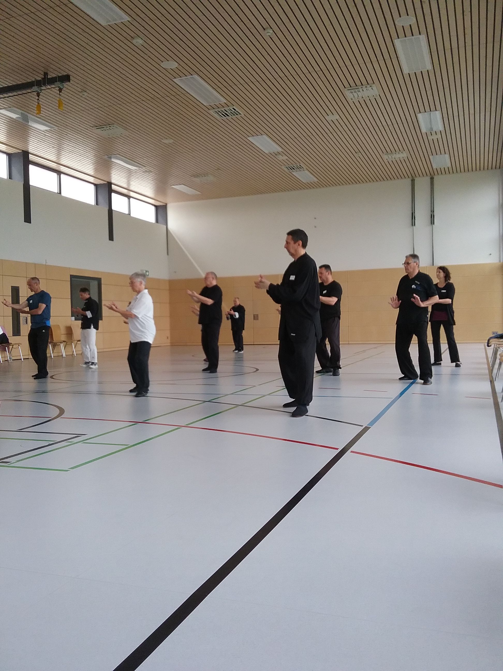 Herr Lie hat dieses Mal mit den Teilnehmerinnen und Teilnehmern das Yang-Stil Taijiquan mit 13 Folgen einstudiert. Wie von ihm zu erfahren war, handelt es sich dabei um eine kurze und inhaltlich kompakte Form aus der traditionellen Form mit 85 Folgen. Die Form ist anspruchsvoll, ohne die Lernenden zu überfordern. Auch die typischen Charakterzüge des Yang-Stil Taijiquan konnten beibehalten werden. Eine abgeschlossene Form, die an einem Wochenende erlernt werden und danach selbst praktiziert werden kann. Mit seiner humorvollen Art hat er alle Teilnehmer mitgerissen und begeistert.