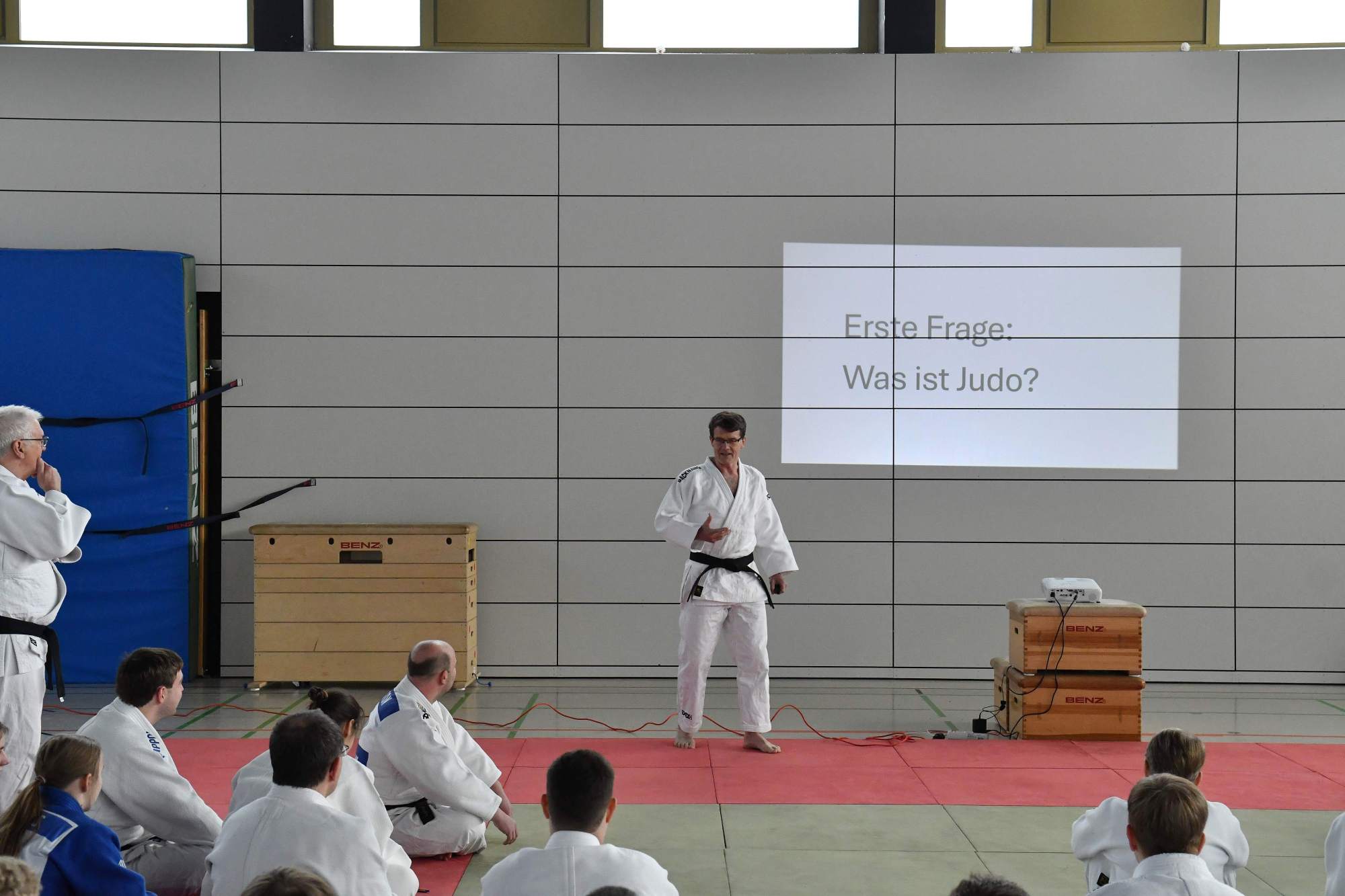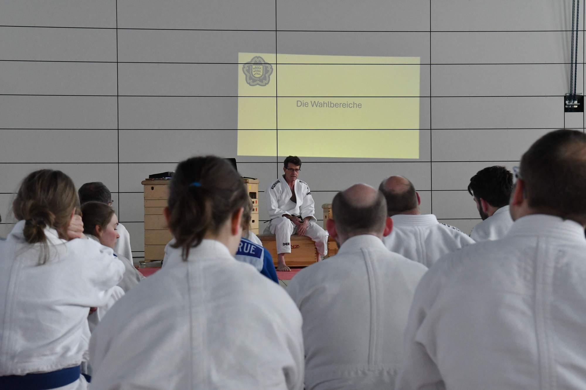 Im Mittelpunkt des Lehrgangs stand die gemeinsame Erörterung der Anforderungen der einzelnen Dan-Grade. Ergänzt wurde dies durch fundiertes theoretisches Hintergrundwissen zur Geschichte und Ideologie des Judo.