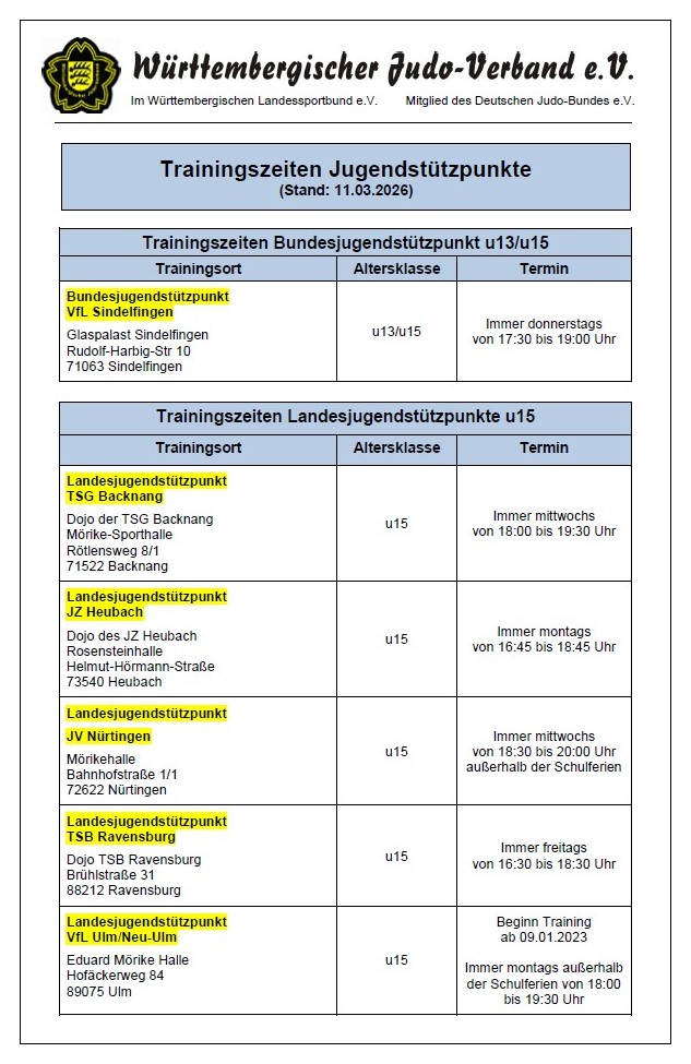 Trainingszeiten WJV-Jugendstützpunkte u15